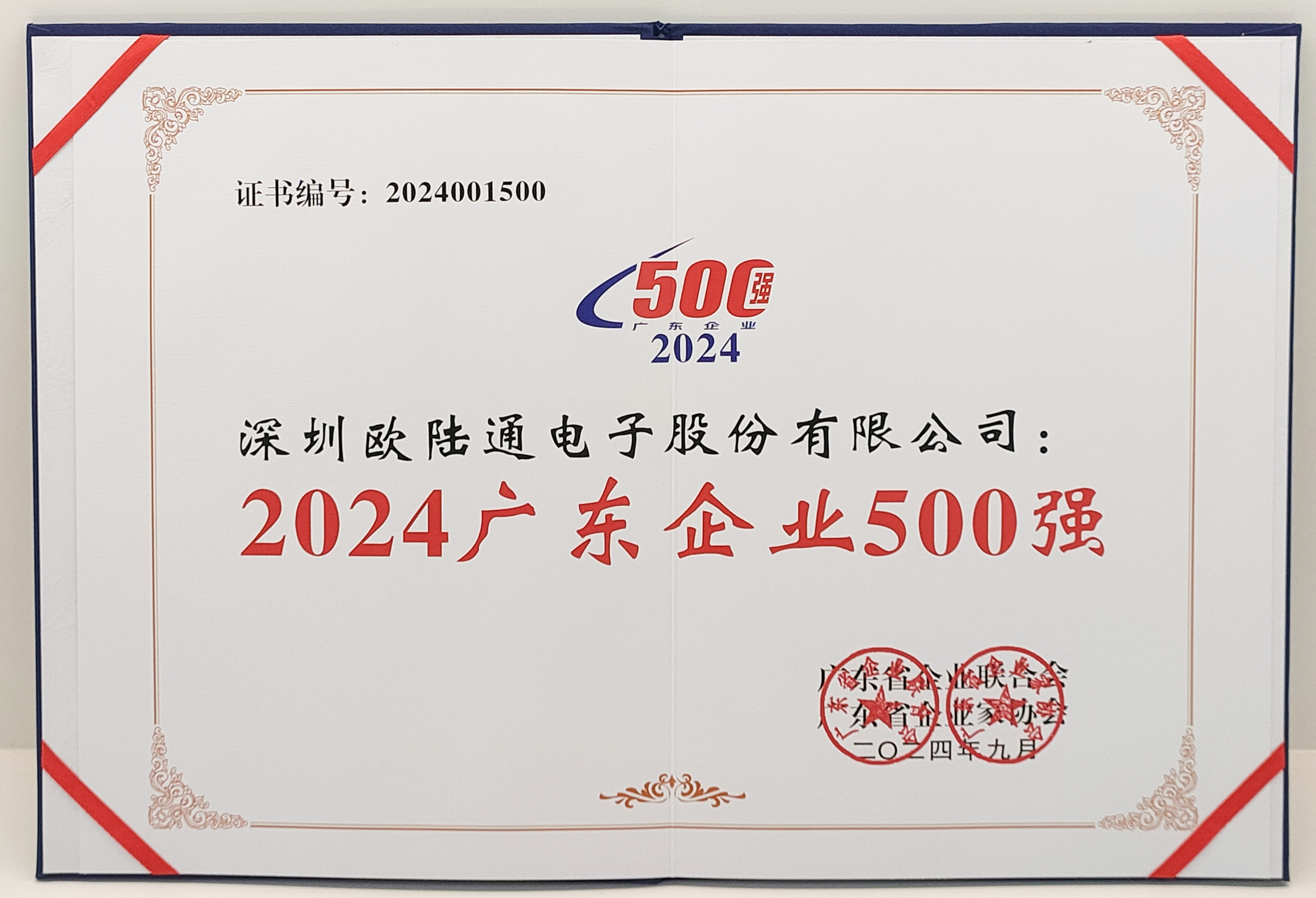 2024廣東企業(yè)500強(qiáng)證書